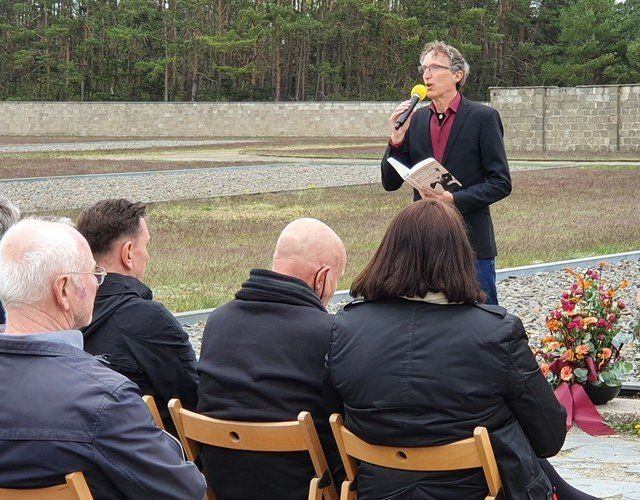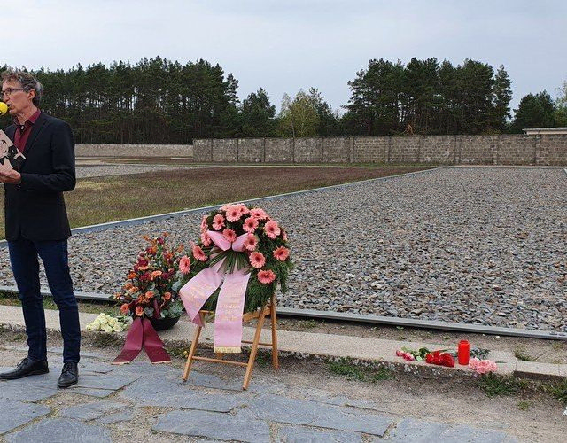 Anlässlich des 80. Jahrestags der Mordaktion an homosexuellen Männern im KZ-Außenlager Klinkerwerk in Oranienburg – der größten Massenmordaktion gegen Rosa-Winkel-Häftlinge des KZ Sachsenhausen – fand am Sonntag, 18. September 2022 am Gedenkort am Hafenbecken des ehemaligen KZ-Außenlagers Klinkerwerk in Oranienburg eine Gedenkveranstaltung statt. Allein zwischen Juni und September 1942 kamen mehr als 100 Häftlinge mit dem Rosa Winkel im Klinkerwerk auf unterschiedliche Weise ums Leben: infolge von Misshandlungen, bei inszenierten Unfällen oder durch Erschießungen. Auf dem Programm standen Informationen über den historischen Ort und die Mordaktion sowie eine Gedenkfeier mit Redebeiträgen unter anderem des Präsidenten des Internationalen Sachsenhausen Komitees, Dik de Boef, Lothar Dönitz sprach für den Gesprächskreis und einer szenischen Lesung zu Opferschicksalen.