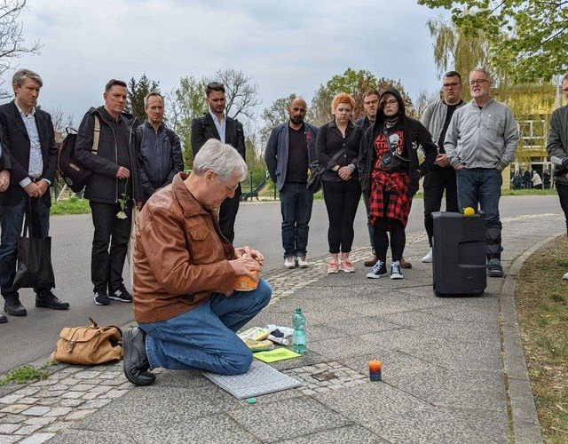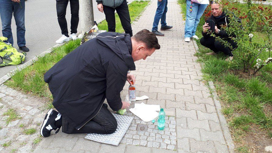Gemeinsam mit Cordýline Bartz wurden Stolpersteine für jüdische Opfer des Holocaust sowie für ermordete Männer mit dem Rosa-Winkel-Häftlinge gereinigt:
