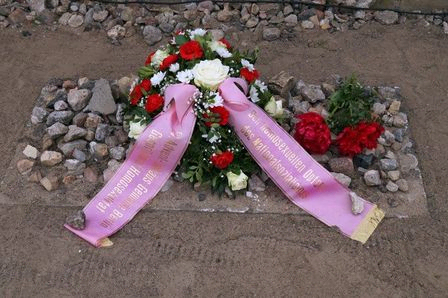 Ein gemeinsamer Kranz des Gesprächskreises und des LSVD Berlin-Brandenburg, ein Kranz von den Lesben und Schwulen in der Union Berlin (LSU) und Blumen.